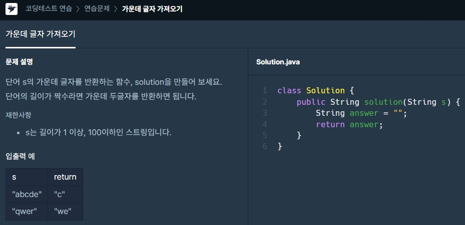 알고리즘 : 프로그래머스 : JAVA : 가운데 글자 가져오기