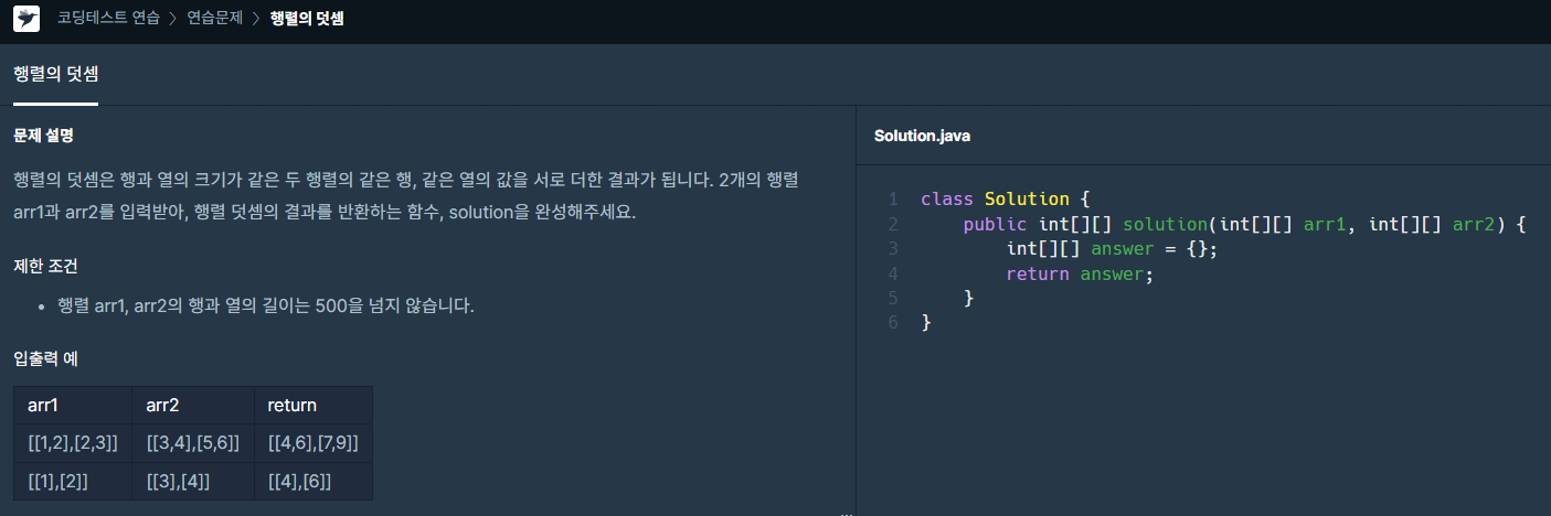 알고리즘 : 프로그래머스 : JAVA : 행렬의 덧셈
