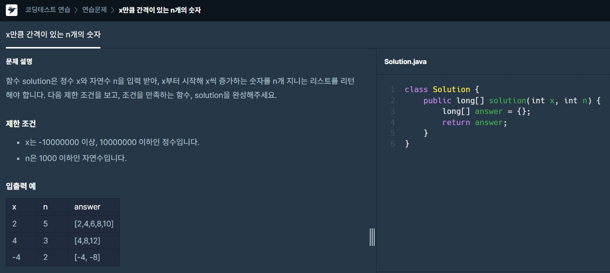 (2) n만큼 for문을 돌리면서 answer[0]부터 answer[n-1]까지 x * 1, x * 2, ....., x*n 한 값을 넣어준다.