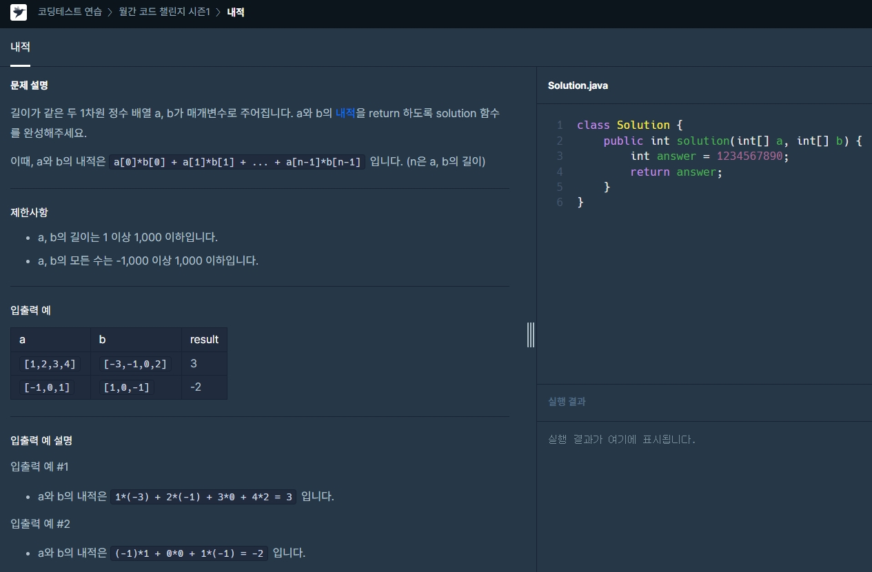 알고리즘 : 프로그래머스 : JAVA : 내적
