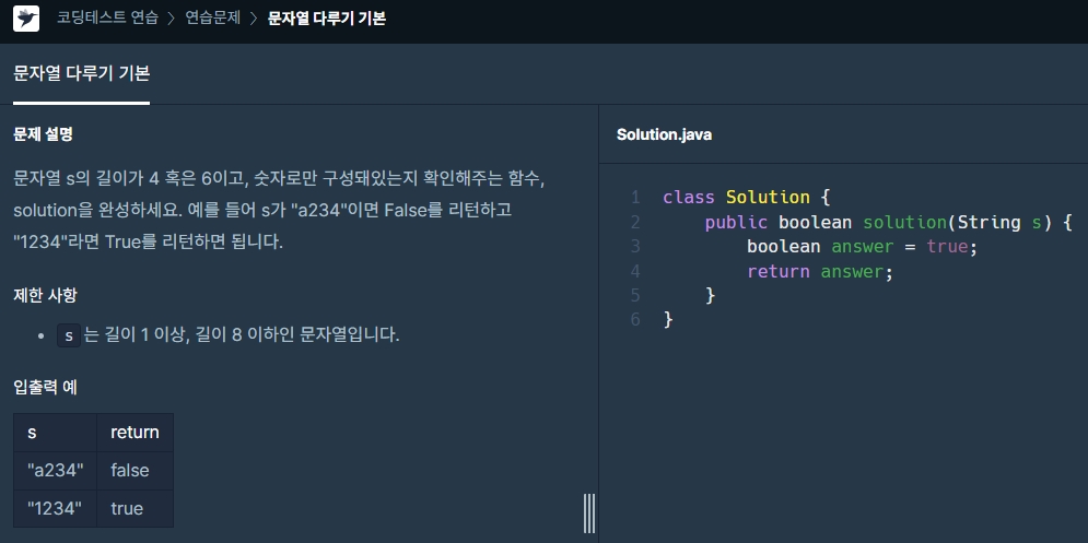 알고리즘 : 프로그래머스 : JAVA : 문자열 다루기 기본