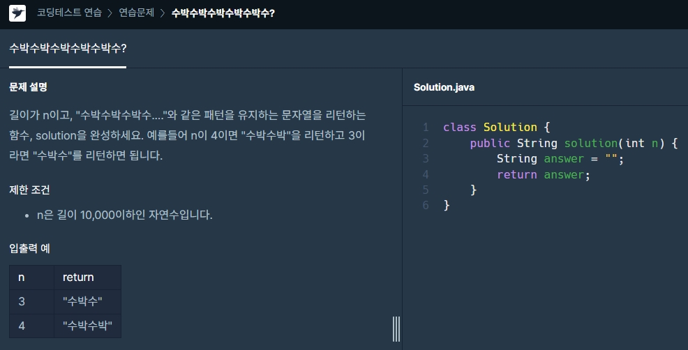 알고리즘 : 프로그래머스 : JAVA : 수박수박수박수박수박수?