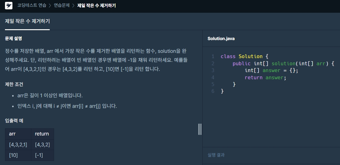 int[] answer = {-1}; // 배열이 빈 배열인 경우 -1을 리턴