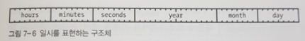그림 7-6은 일시를 C로 작성하며 표현한 구조체이다.