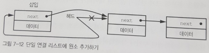 리스트에는 원소를 쉽게 추가 할 수 있다. 그림 7-12처럼 헤드 앞에 새 원소를 위치시키면 된다.