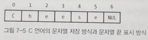C는 다른 언어와 달리 문자열을 위한 전용 데이터 타입을 제공하지 않는다. 대신 1차원 바이트 배열을 사용한다. 문자열이 문자 배열이기 때문에 C에서 1바이트를 나타내는 데이터 이름이 char가 됬다.