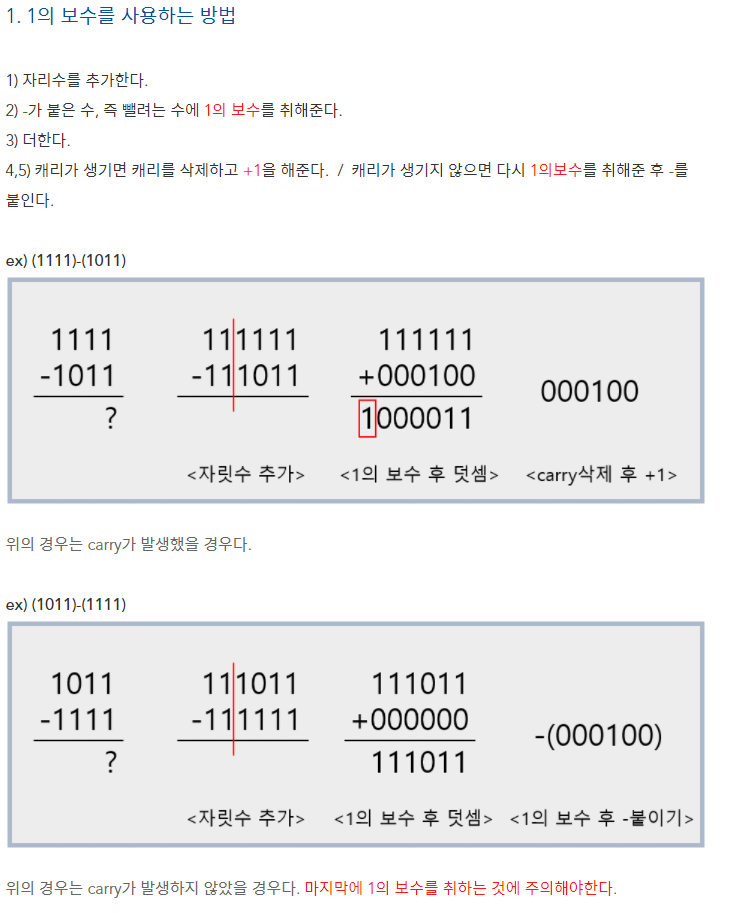 2진수의 보수는 1의 보수와 2의 보수가 있다.
